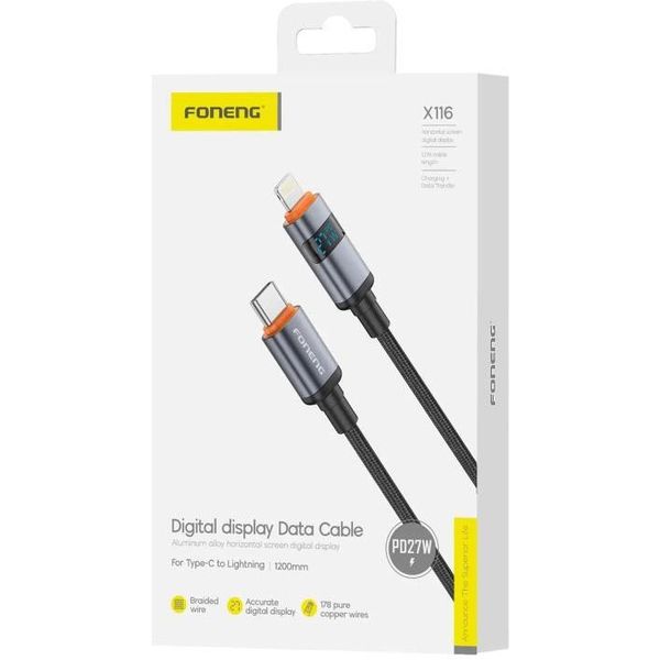 > > > USB 2.0 CABLE FONENG X116 POWER DISPLAY ALUMINUM ALLOY BRAIDED USB C TO LIGHTNING PD 27W 1.2M BLACK