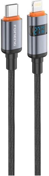 USB 2.0 CABLE FONENG X116 POWER DISPLAY ALUMINUM ALLOY BRAIDED USB C TO LIGHTNING PD 27W 1.2M BLACK (TEL.235264)