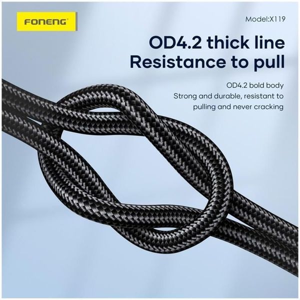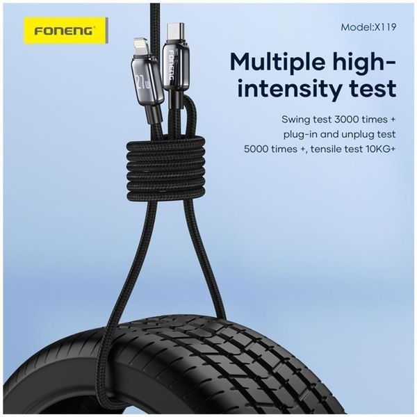 usb 20 cable foneng x119 zinc alloy head braided usb c to lightning pd 27w 1m black extra photo 1  usb 20 cable foneng x119 zinc alloy head braided usb c to lightning pd 27w 1m black extra photo 2  usb 20 cable foneng x119 zinc alloy head braided usb c to lightning pd 27w 1m black extra photo 3