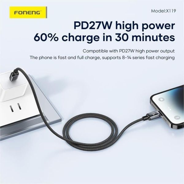 > > > USB 2.0 CABLE FONENG X119 ZINC ALLOY HEAD BRAIDED USB C TO LIGHTNING PD 27W 1M BLACK