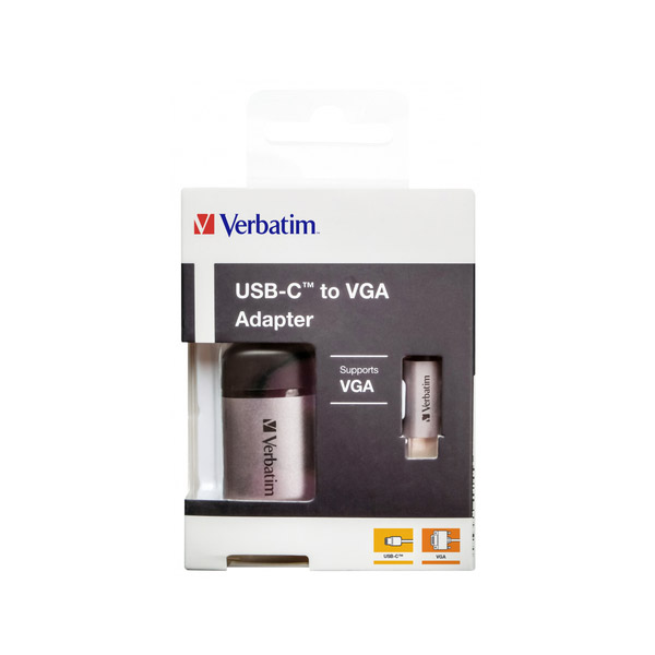 Ο προσαρμογέας Verbatim USB-C σε VGA σας επιτρέπει να συνδέσετε τους φορητούς υπολογιστές και τα MacBooks USB-C ή Thunderbolt 3 (USB-C) σε οθόνη VGA. Είναι ο ιδανικός σύντροφος για τους τελευταίους φορητούς υπολογιστές και MacBooks με περιορισμένες θύρες. Δεν χρειάζεται να αντικαταστήσετε ολόκληρη την εγκατάσταση όταν αναβαθμίζετε το φορητό σας υπολογιστή, απλά συνδέστε τον προσαρμογέα σε μια θύρα USB-C του φορητού σας υπολογιστή και, στη συνέχεια, συνδέστε την υποδοχή VGA της τηλεόρασης, του προβολέα ή της οθόνης.