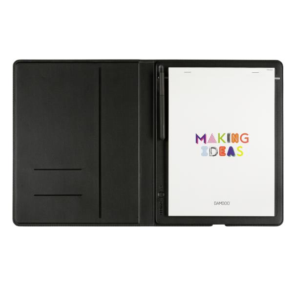 Κρατήστε τις σημειώσεις και τις ιδέες σας με τον πιο φυσικό τρόπο, χαρτί και μολύβι. Με το πάτημα ενός κουμπιού, το bamboo folio μετατρέπει τις χειρόγραφες σημειώσεις σας σε ζωντανά ψηφιακά αρχεία. Η εφαρμογή Wacom inkspace σας βοηθά στην οργάνωση, επεξεργασία και διαμοιρασμό των σημειώσεων, σε οποιαδήποτε συσκευή iOS ή Android με δυνατότητα Bluetooth. Με την εφαρμογή Inkspace cloud μπορείτε να συγχρονίσετε τις σημειώσεις σας διαδικτυακά και να έχετε πρόσβαση σε αυτές από οπουδήποτε. Τύπος: Smartpad.Εργονομία: Χρήση με δεξί και αριστερό χέρι.Χρώμα: Σκούρο γκρι.Συμβατότητα: Android, Apple, Windows.Μέγεθος: 338 x 268 x 19mm.Ενεργή περιοχή: A4.Σημεία πίεσης: 1024.Βάρος: 810g.Τεχνολογία: Patended electromagnetic resonance method.Εγγύηση: 2 χρόνια. DOA 7 ημερών