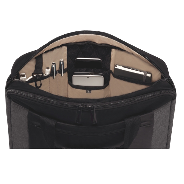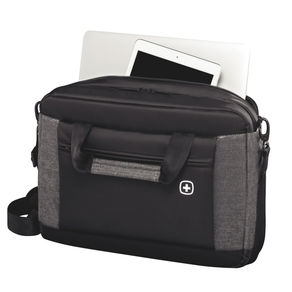 Αυτή η κομψη τσάντα για φορητό υπολογιστή 16 ιντσών με τσέπη Tablet κρατάει τις ηλεκτρονικές σας συσκευές καλά προστατευμένες. Διαθέτει εξωτερική τσέπη που παρέχει εύκολη πρόσβαση στα αντικείμενα που χρειάζεστε πιο συχνά, έναν ρυθμιζόμενο ιμάντα ώμου με δυνατότητα προσαρμογής, μια τσέπη στο πίσω μέρος που μετατρέπεται σε Pass-Thru trolley sleeve για να τοποθετήσετε την τσάντα πάνω στην λαβή της τροχοφόρας αποσκευής σας για ένα πιο άνετο ταξίδι.