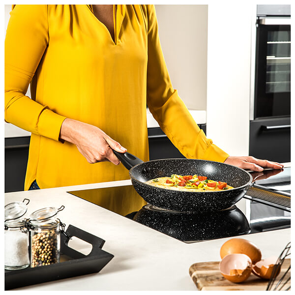 Αντικολλητικό τηγάνι (24 cm) Black Marble Series από την Westinghouse! Πρόκειται για ιδιαιτέρως χρηστικό σκεύος, καθώς ενδείκνυται για την εκτέλεση μεγάλου εύρους συνταγών, ενώ προσφέρεται για χρήση σε κάθε εστία και καθαρίζεται εύκολα στο χέρι ή στο πλυντήριο πιάτων χάρη στην διπλή αντικολλητική επίστρωση μαύρου μαρμάρου. Παράλληλα, το κομψό, high-end design του τηγανιού, σε συνδυασμό με την μοναδική συσκευασία του.
