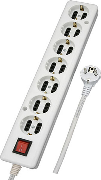Πολύπριζο 7 θέσεων, με καλώδιο 5 μέτρων και διακόπτη για να μπορείτε να το κλείνετε χωρίς να το βγάζετε από την πρίζα.
