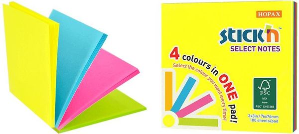 ΧΑΡΤΙΑ ΣΗΜΕΙΩΣΕΩΝ STICKN ΑΥΤΟΚΟΛΛΗΤΑ 4 ΝΕΟΝ ΧΡΩΜΑΤΑ Α' 76X76MM 100 ΦΥΛΛΑ (ANA.STC00007)
