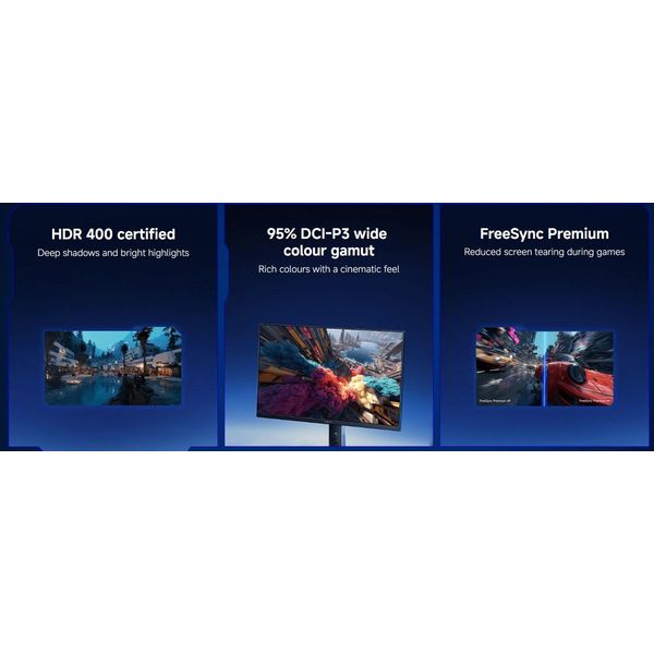 - Ακριβής χρωματική απόδοση: εργοστασιακά βαθμονομημένη με ΔE < 2, 100% sRGB και 95% DCI-P3 για ζωντανά και πιστά χρώματα.