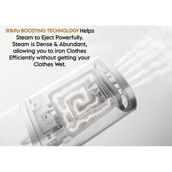 Η τεχνολογία πίεσης 30kPa εξασφαλίζει ισχυρή εκτόξευση ατμού και εξαιρετική αποδοτικότητα χωρίς να βρέχει τα ρούχα σας. Δεν χρειάζεται να περιμένετε για στέγνωμα.
