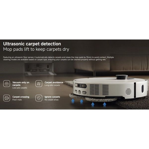 - Αναγνώριση και αποφυγή 200+ αντικειμένων (π.χ. καλώδια, κάλτσες, φυτά) για ασφαλή και χωρίς εμπλοκές λειτουργία.