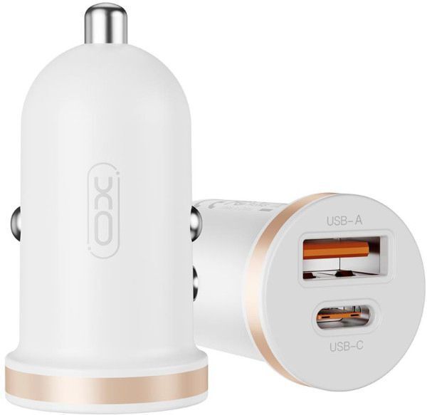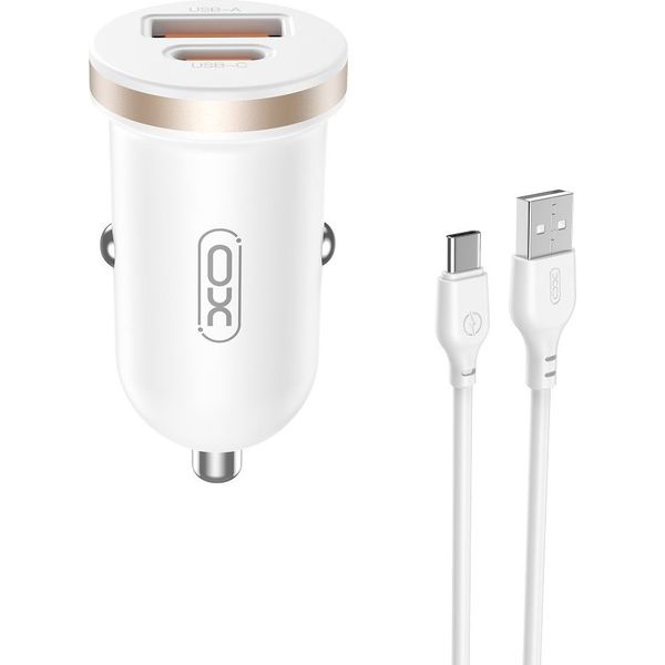 XO CC69 UNIVERSAL ΦΟΡΤΙΣΤΗΣ ΑΥΤΟΚΙΝΗΤΟΥ ΜΕ 2 ΕΞΟΔΟΥΣ 1X USB-A & 1X USB-C ΚΑΙ ΜΕ ΚΑΛΩΔΙΟ WHITE