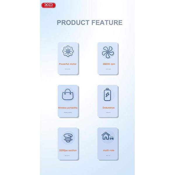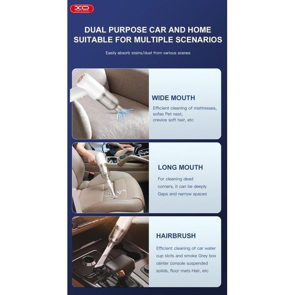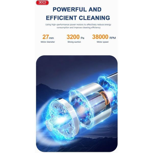 Το επαναφορτιζόμενο ασύρματο σκουπάκι χειρός XO CZ007 προσφέρει πρακτικότητα, φορητότητα και αποτελεσματικό καθαρισμό, είτε στο σπίτι είτε στο αυτοκίνητο. Με ισχυρή αναρρόφηση 3200Pa και DC μοτέρ που φτάνει τις 38.000 στροφές/λεπτό, εξασφαλίζει άμεση απομάκρυνση σκόνης, ψίχουλων και μικρών ρύπων από κάθε επιφάνεια. Η ασύρματη λειτουργία του το καθιστά εύχρηστο και ευέλικτο, επιτρέποντάς σου να καθαρίζεις γρήγορα και άνετα σημεία που είναι δύσκολο να προσεγγίσεις με μια κλασική ηλεκτρική σκούπα. Το δοχείο συλλογής 0.4L αφαιρείται εύκολα για γρήγορο άδειασμα, ενώ το πλενόμενο φίλτρο συμβάλλει στην καθαρή και υγιεινή λειτουργία. Φορτίζει μέσω USB-C, με διάρκεια λειτουργίας 18 λεπτών και πλήρη φόρτιση σε 3 ώρες, καθιστώντας το ιδανικό για καθημερινές, γρήγορες ανάγκες καθαρισμού. Συνοδεύεται από ακροφύσιο για γωνίες και βουρτσάκι καθαρισμού, ώστε να αντιμετωπίζεις κάθε είδους βρωμιά με ακρίβεια. - Ισχυρή αναρρόφηση: 3200Pa