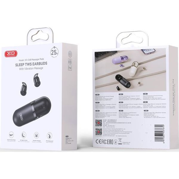 Bluetooth εργονομικά ακουστικά με δονούμενη θήκη φόρτισης και δυνατότητα χρήσης κατά τον ύπνο, σε μαύρο χρώμα.