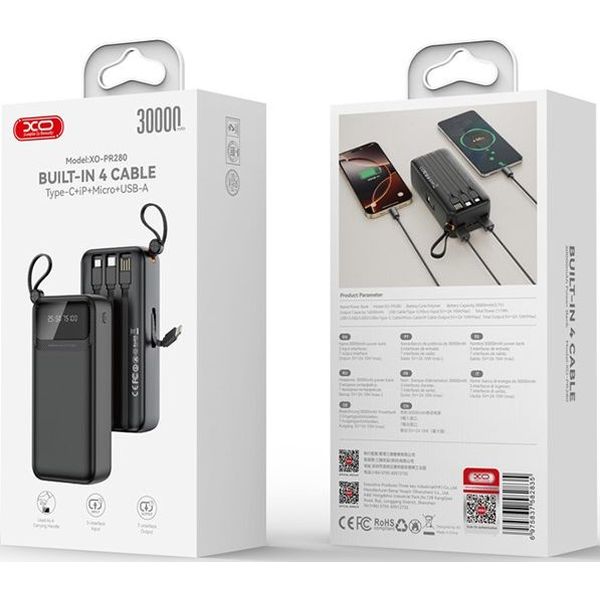 XO PR280 POWERBANK 30000MAH (USB-A, TYPE-C, MICRO, LIGHTNING)