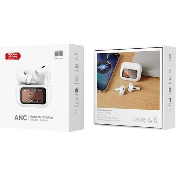XO X36 BLUETOOTH ΑΚΟΥΣΤΙΚΑ HANDSFREE ΜΕ ΘΗΚΗ ΑΣΥΡΜΑΤΗΣ ΦΟΡΤΙΣΗΣ NOISE CANCELLATION ΚΑΙ ΟΘΟΝΗ WHITE