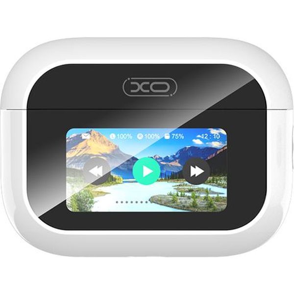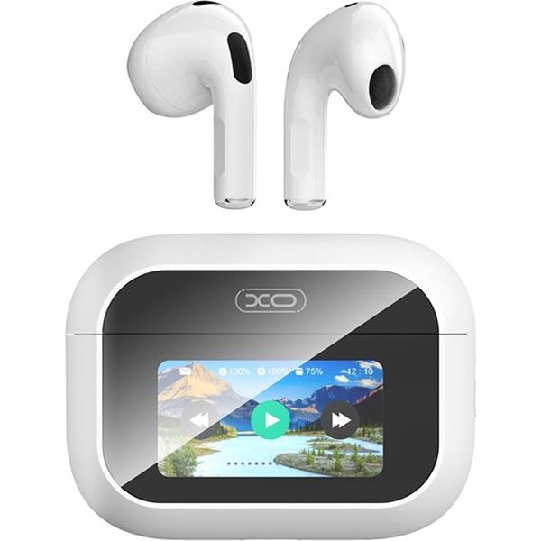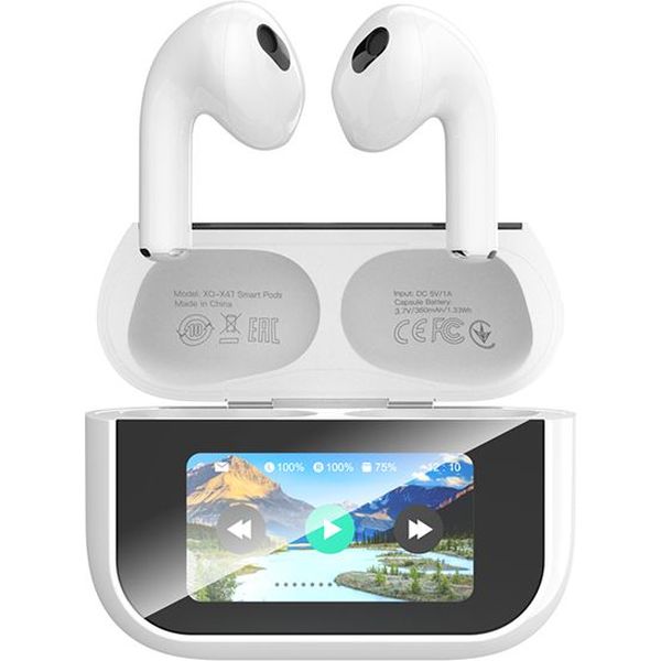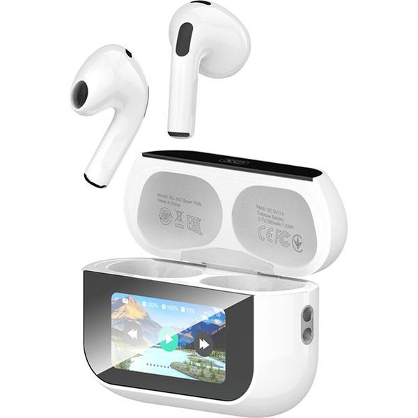 Bluetooth ακουστικά handsfree με θήκη φόρτισης και οθόνη, σε λευκό χρώμα