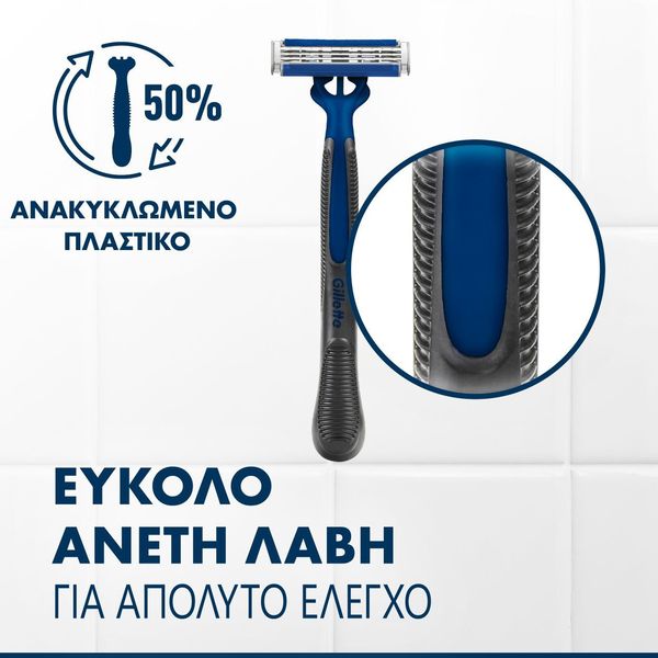 - 3 Λεπίδες για άνετο ξύρισμα μακράς διάρκειας και 2x καλύτερο ξέβγαλμα από την BlueII Plus.