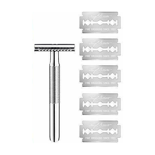 Ένα ξυράφι με ένα λεπτό σχεδιασμό για δυνατές και ακριβής γραμμές γενειάδας για να σας βοηθήσει να επιτύχετε την τέλεια εμφάνιση. Ο σχεδιασμός της χτένας επιτρέπει εξαιρετικό έλεγχο, ενώ η λαβή υψηλής ποιότητας είναι επιχρωμιωμένη για καλύτερη αντοχή. Κάθε ξυράφι Double Edge Safety διαθέτει 5 λεπίδες.