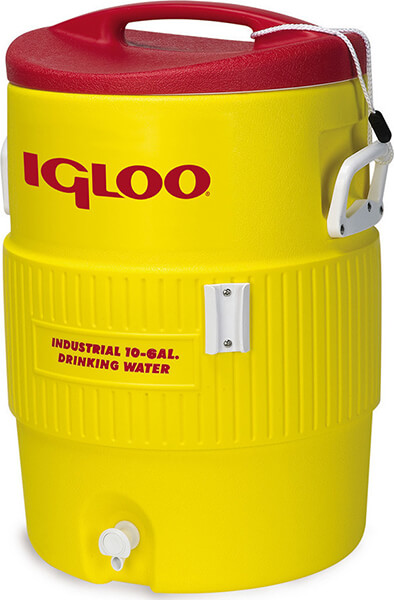 Δοχείο Θερμός Igloo. -Με μόνωση Ultratherm στο σώμα για διατήρηση της ψύξης. -Διατηρεί τον πάγο για 3 μέρες σε θερμοκρασία 32 °C. - -Έντονο χρώμα για εύκολο εντοπισμό στο εργοτάξιο αλλά και στην φύση. -Με αναστολείς UV για προστασία από την ηλιακή ακτινοβολία. -Καπάκι που κλείνει πρεσαριστό, για να μην πιάνει βρωμιά στο σπείρωμα. -Με κινούμενη χειρολαβή και βρυσάκι. Εξωτερικές διαστάσεις: 41.9 x 41.4 x 59.7 cm.Χωρητικότητα: 38 lt.Χρώμα: Κίτρινο.