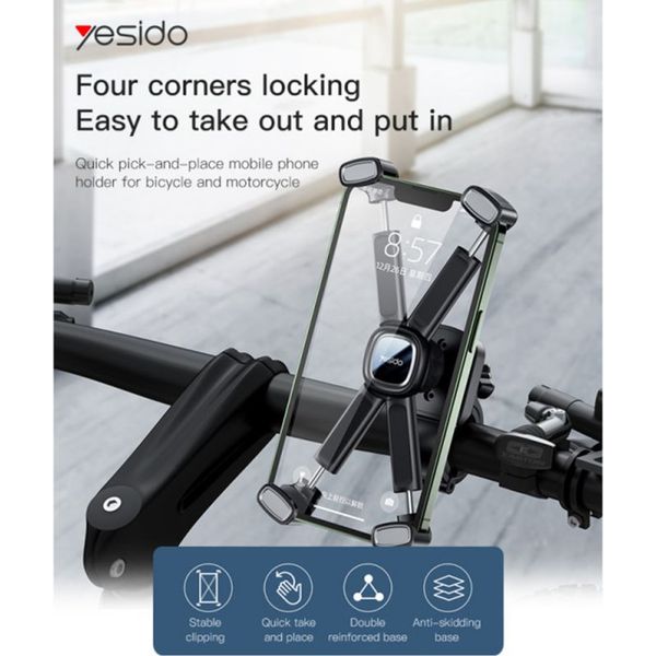 YESIDO C191 MOTORCYCLE HOLDER 4.5INCH - 6.8INCH BLACK (TEL.240248)