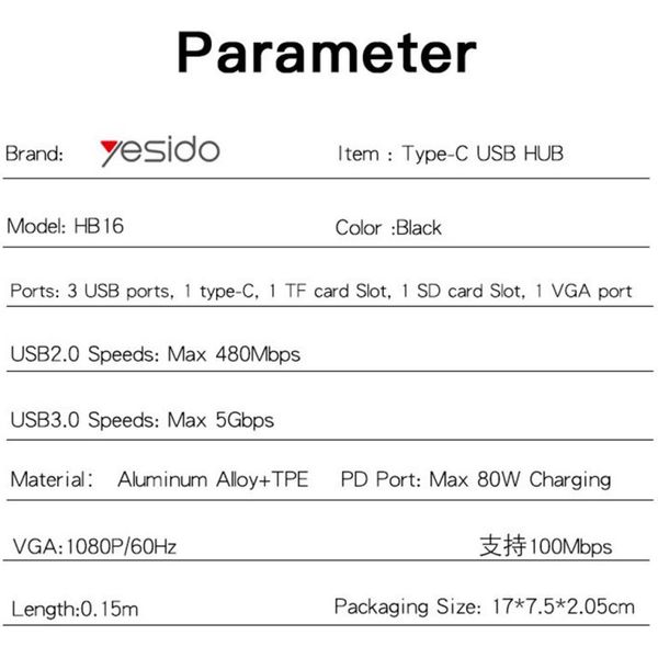 > > > YESIDO HB16 USB-C HUB 7IN1 GREY