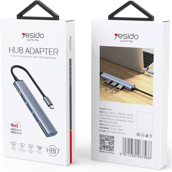 YESIDO HB17 USB-C HUB 4IN1 GREY PER.620674 YESIDO YESIDO USB HUB