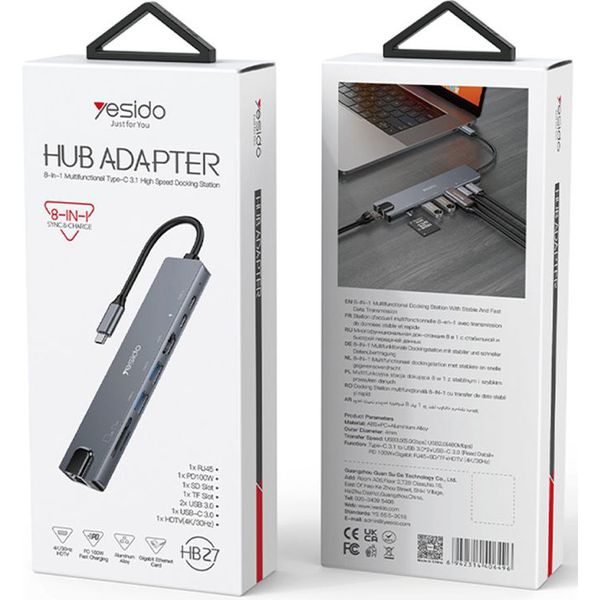 YESIDO HB27 USB-C HUB 8IN1 GREY PER.620678 YESIDO YESIDO USB HUB