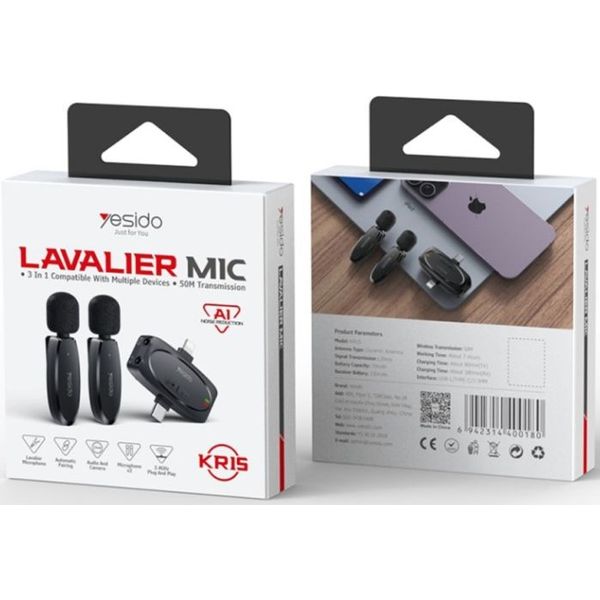 > > > YESIDO KR15 WIRELESS MICROPHONE USB-C / LIGHTNING 2-PACK BLACK