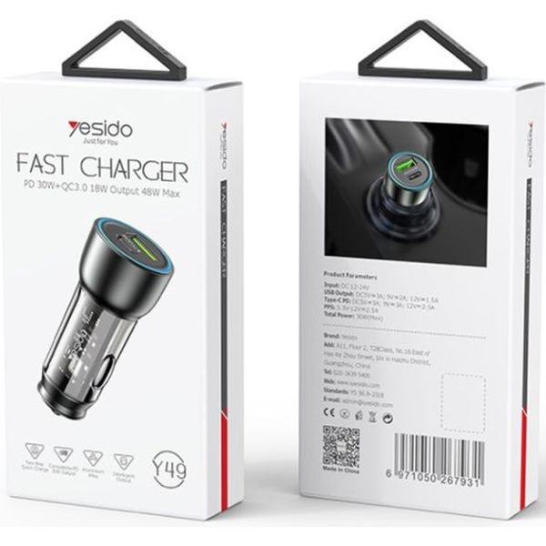 > > > YESIDO Y49 CAR CHARGER 30W 3A 1 X USB-A - 1 X USB-C GREY