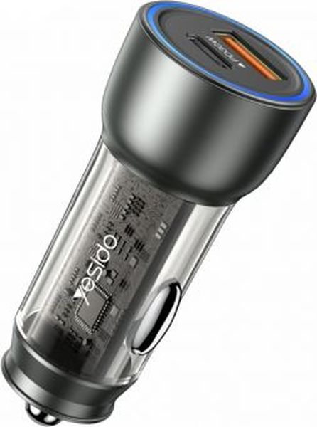 YESIDO Y49 CAR CHARGER 30W 3A 1 X USB-A - 1 X USB-C GREY