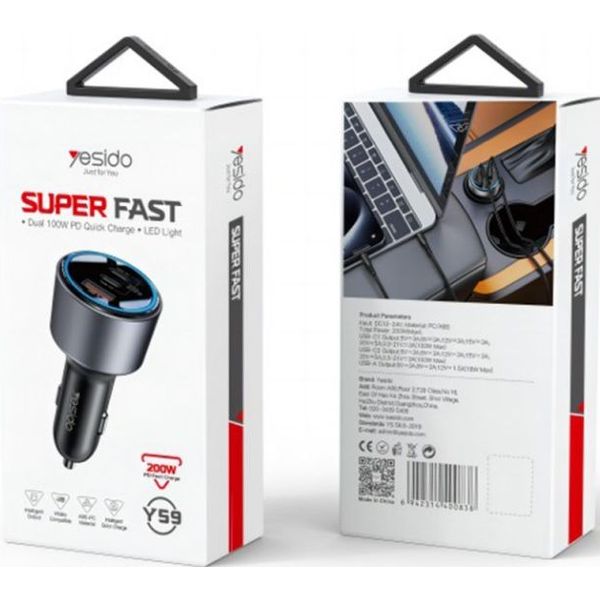 > > > YESIDO Y59 CAR CHARGER 200W 5A 1 X USB-A - 2 X USB-C BLACK