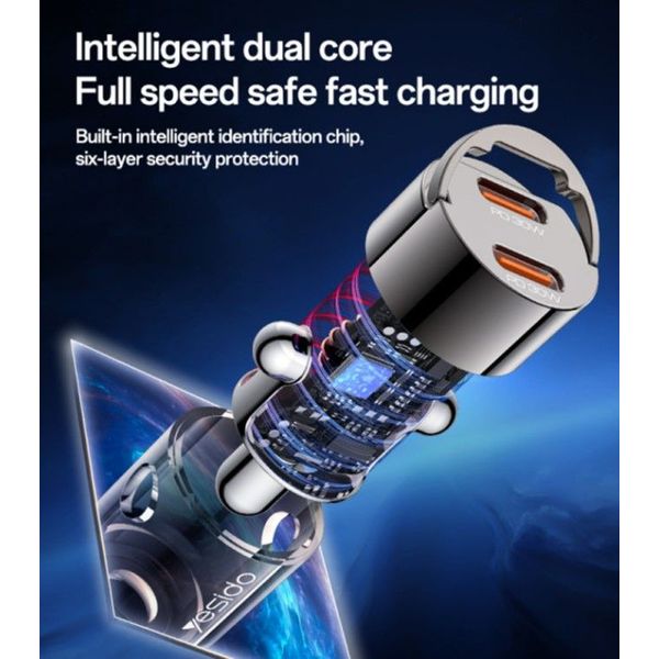 YESIDO Y69 CAR CHARGER 30W 3A 2 X USB-C BLACK