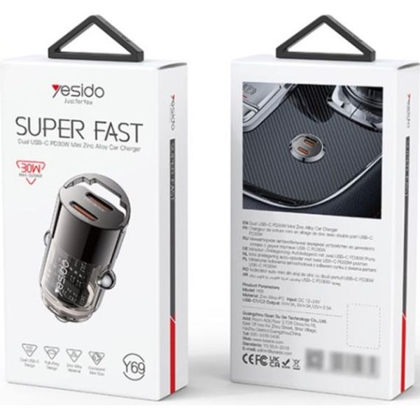 > > > YESIDO Y69 CAR CHARGER 30W 3A 2 X USB-C BLACK