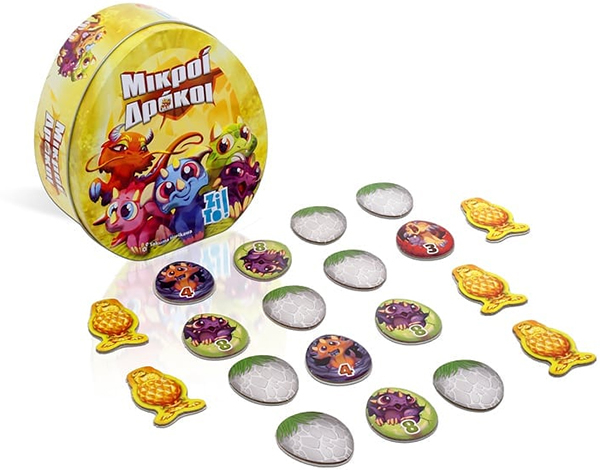 Έρχονται τα δρακάκια!Βοήθησε τα δρακάκια να βγουν από τα αυγά τους και συγκέντρωσε όσο περισσότερα αυγά μπορείς, για να γίνεις εσύ ο Αρχηγός των Μικρών Δράκων!Προσπάθησε να βρεις τα ίδια αυγά δράκου. Κέρδισε ένα τρόπαιο αποκτώντας τα περισσότερα ίδια αυγά. Μέτρησε τα τρόπαια και τα αυγά σου. Ο παίκτης με τους περισσότερους πόντους κερδίζει!Περιεχόμενα: 47 αυγά δράκων, 1 χρυσό αυγό-τρόπαιο, 1 βιβλίο κανόνων Το παιχνίδι είναι κατάλληλο για 2-6 παίκτες άνω των 5 ετών. Μέση διάρκεια παιχνιδιού 15 λεπτάΔεξιότητες: Αναγνώριση αριθμών, Πληθυσμιακή αρίθμηση, Ταύτιση αριθμών, Συνδυαστική σκέψη, Στρατηγική σκέψη, Μνήμη , Εναλλαγή σειράς