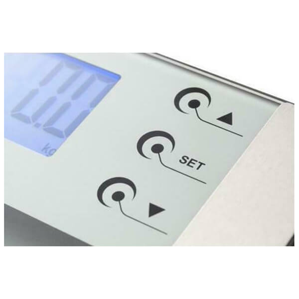 Ψηφιακή ζυγαριά μπάνιου σε ασημί χρώμα, για μέτρηση του σωματικού βάρους έως και 180 κιλά. Έχει τη δυνατότητα υπολογισμού του σωματικού λίπους, καθώς και καταγραφής και αποθήκευσης δεδομένων στη μνήμη που διαθέτει.